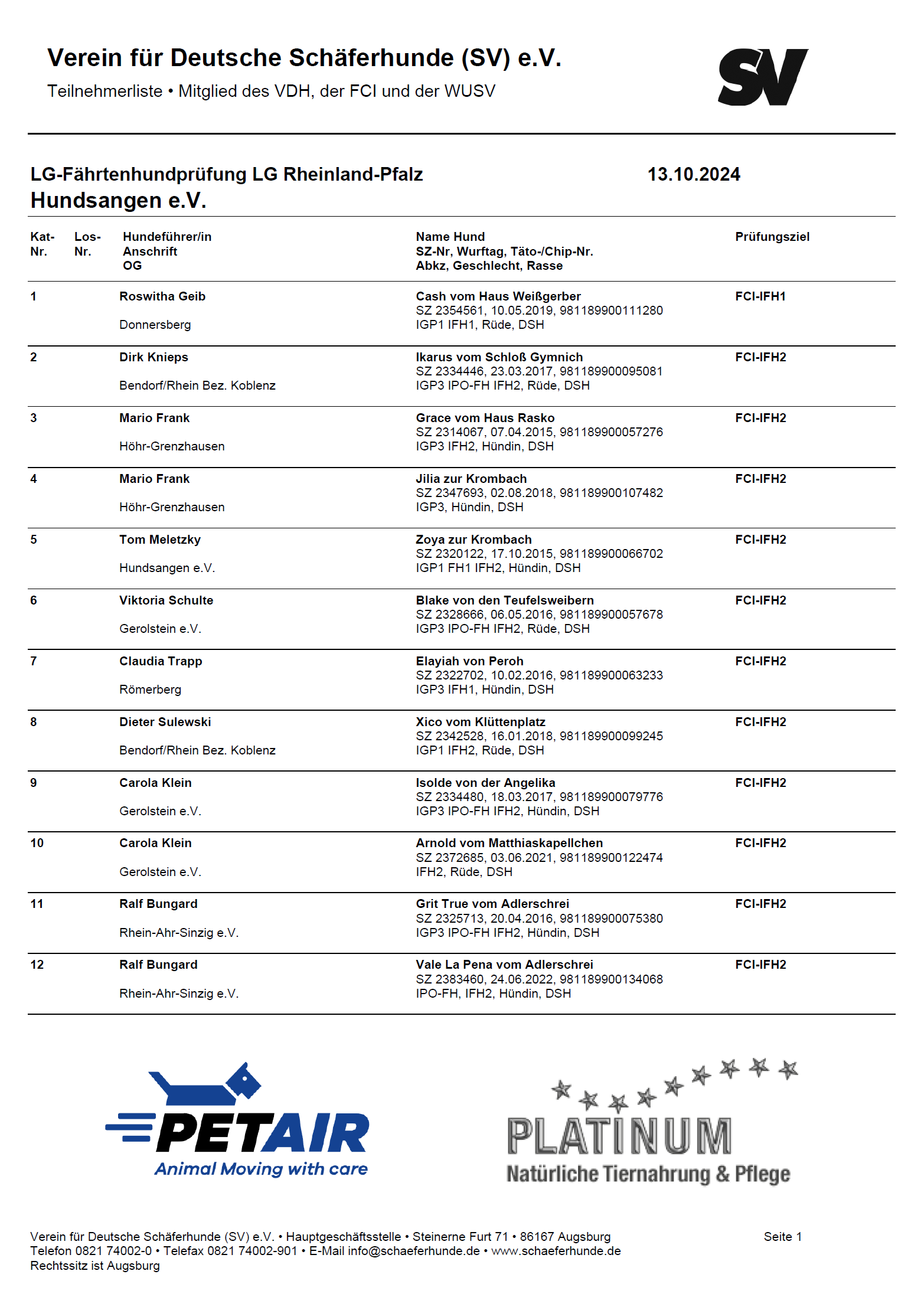Es ist Zeit DANKE zu sagen. Danke an die Fährtenleger Rainer Rosch, Kevin Rosch, Markus Knapp, Tim Kramny, ihr habt einheitlich und souverän gelegt wie immer. Danke an den amtierenden Leistungsrichter Jens Fischbach, Du hast positiv und mit viel Gefühl Dein Urteil gefällt. Danke an die OG Hundsangen für eine tolle Organisation und ein riesen Dank an alle Zuschauer die den Tag begleitet haben. Hundesport wie man es sich wünscht.