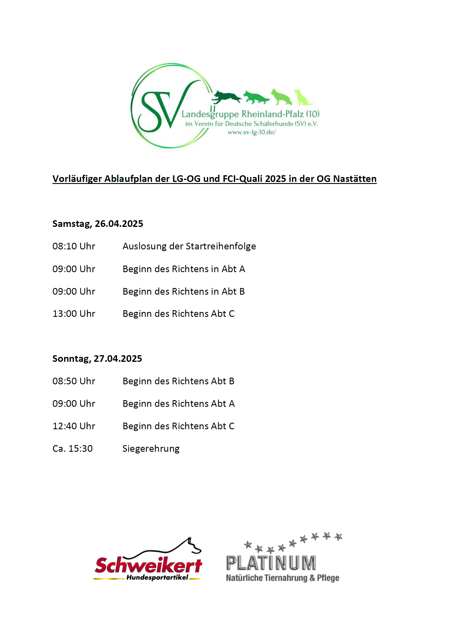 Ich hoffe, dass auch alle Gäste und Zuschauer sich an den Leistungen der Deutschen Schäferhunde erfreuen, und ein wenig die monatelange Arbeit der Hundeführer mit ihren Hunden Wert schätzen.