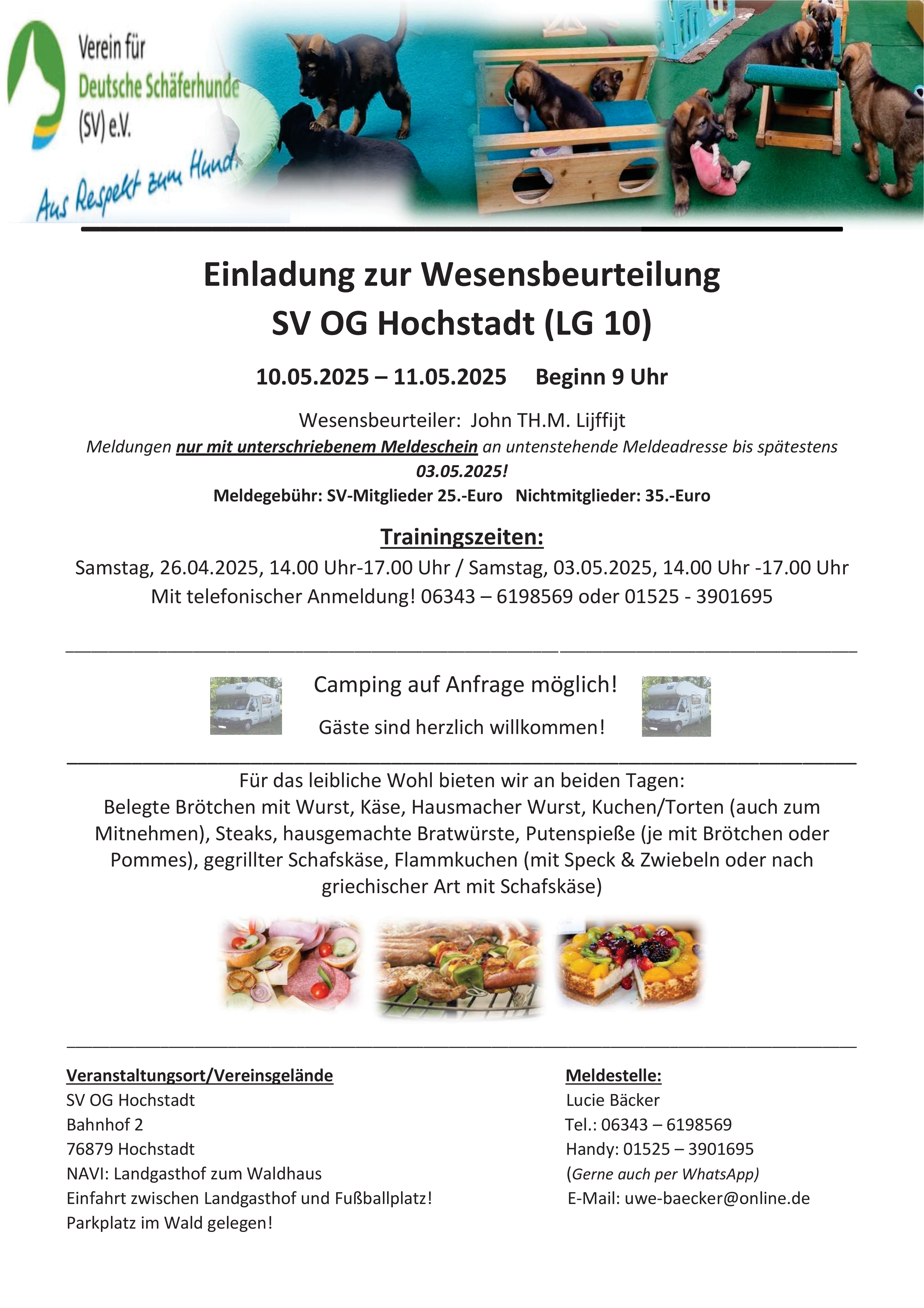 Jubilaren, Ehrungen, Schauen, Turnieren, Körungen, Wesensbeurteilungen, Prüfungen und allen weiteren Veranstaltungen rund um den Deutschen Schäferhund.