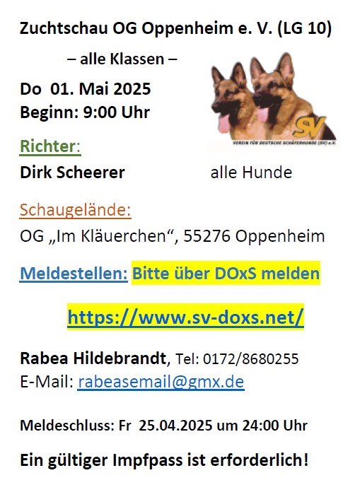 01.05.2025 - OG Zucht- und Nachwuchsschau mit Richter Dirk Scheerer